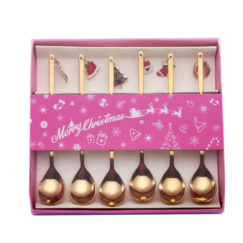 Рождественские украшения, кофейная ложка, нержавеющая ложка, Набор ...