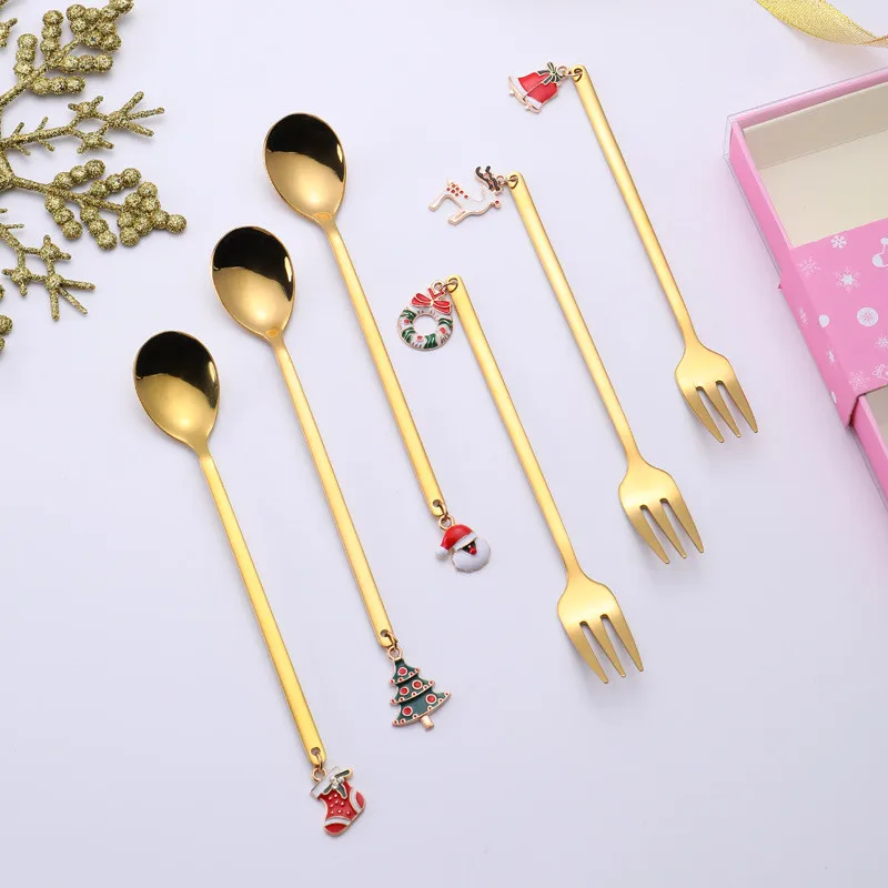 6 шт. рождественские украшения, кофейная ложка, вилка из нержавеюще...