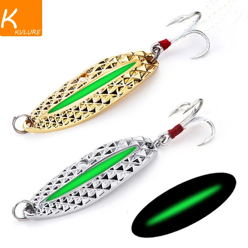 Металлическая светящаяся ложка-Спиннер, рыболовная приманка 5g, 7 г, 10 г, 1, 5g, ночная снасть, блёстки, приманка, шум, пайетка с пером, тройной крючок, Pesca