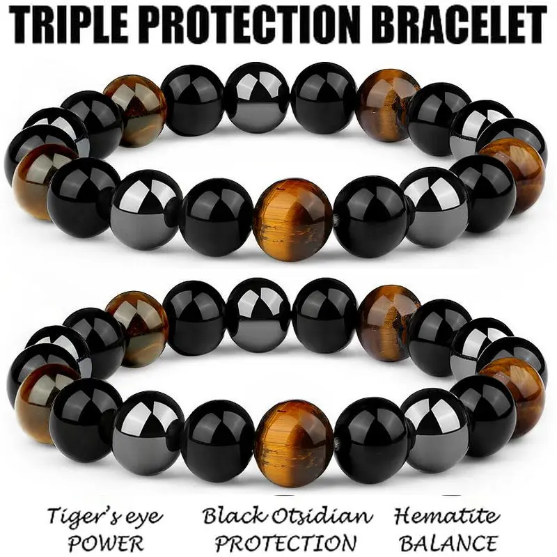 Тройной защитный браслет для мужчин и женщин приносит удачу и процветание гематит черный обсидиан тигровый глаз камень браслеты мужские ювелирные изделия
