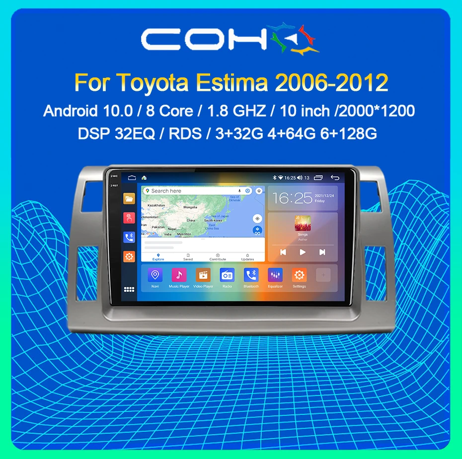 QLED 2000*1200 DSP Android 10 COHO для Toyota Estima 2006-2012 авто...