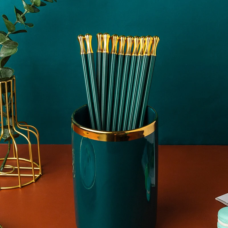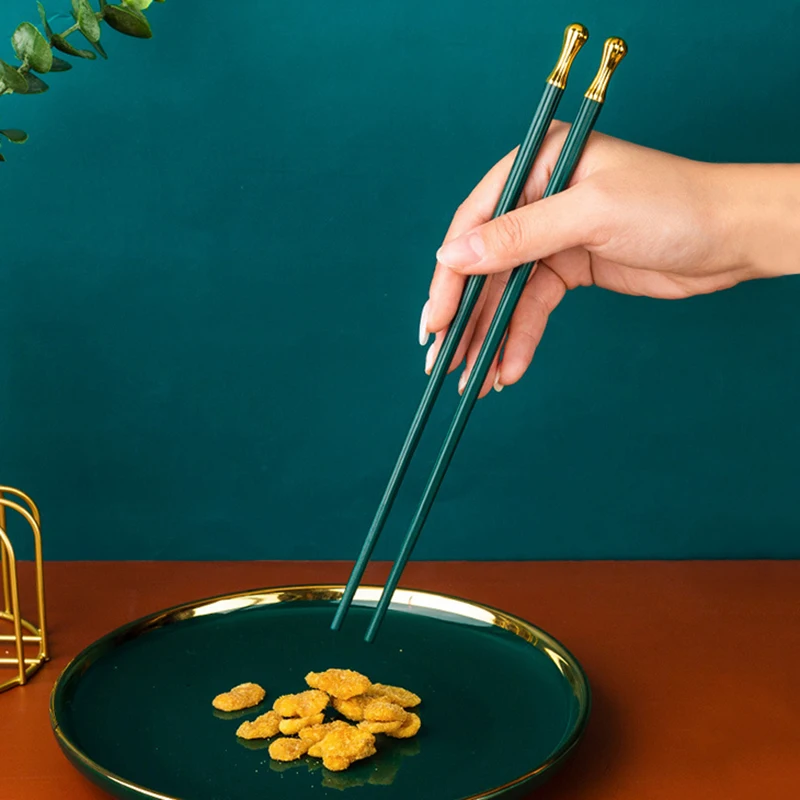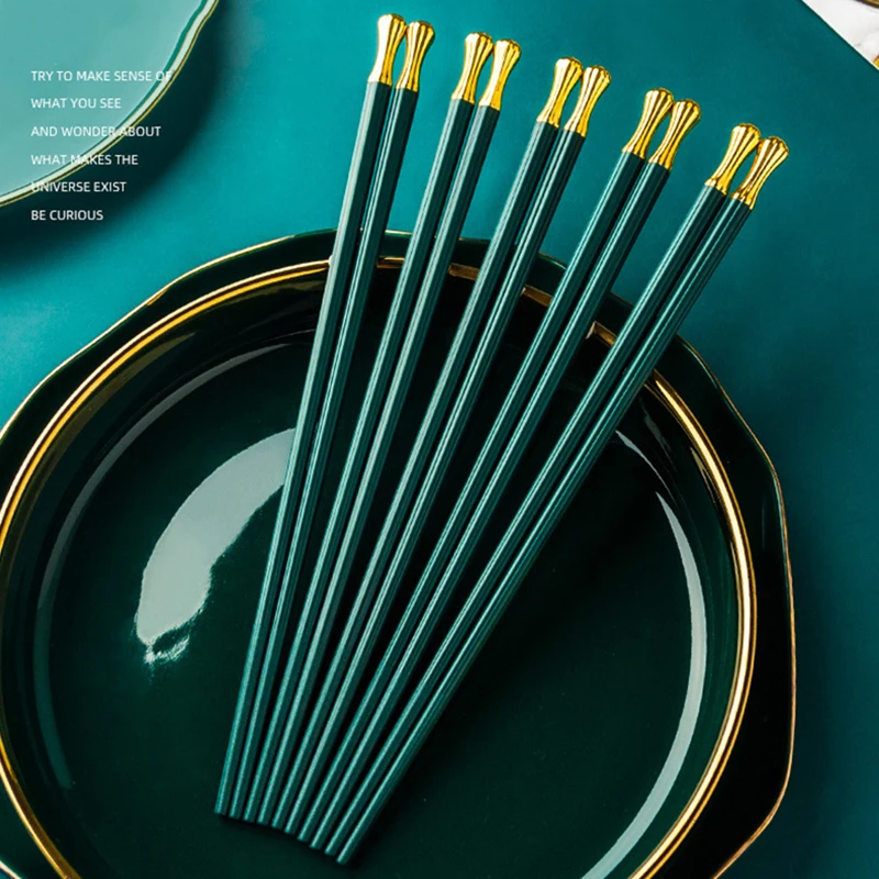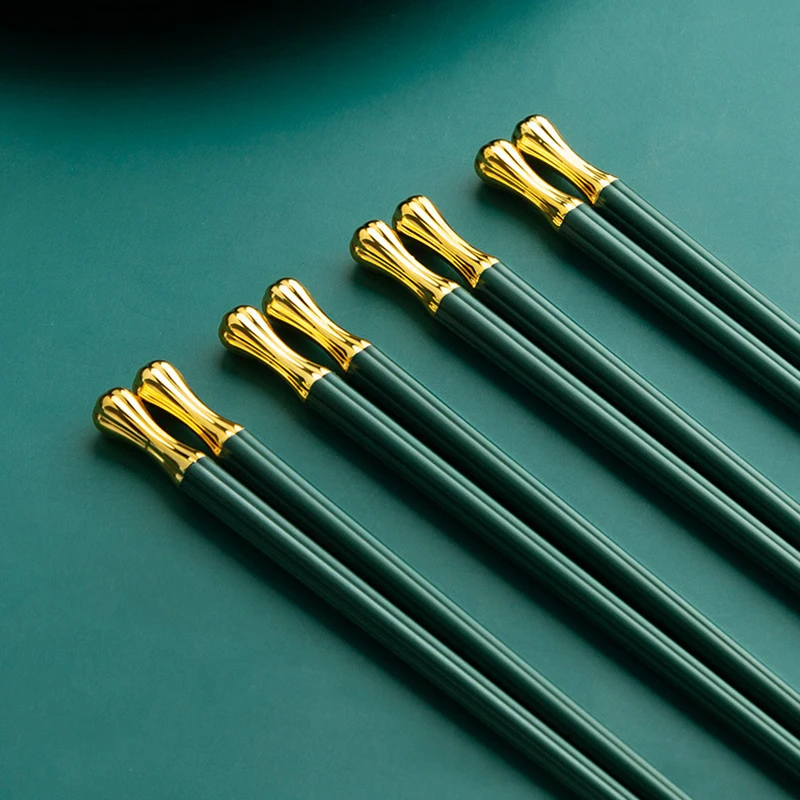 Особенности:** Прочный: Наши палочки для еды изготовлены из высококачественного сплава, который является термостойким, нетоксичным и без запаха, прочным и здоровым для повседневного использования.** Легко чистить: они термостойкие и не сгибаются, не расплавляются или не трескаются.** Широко используется: эти палочки для еды идеально подходят для любых азиатских блюд, таких как суши, рис, лапша дома, в ресторанах, бафетах, кафетериях, вечерние, кемпинг, кафе и т. д.** Легко держать: эргономичный дизайн предотвращает скольжение палочек через кончики пальцев, что делает его более легким** Нескользящая конструкция: Нескользящие наконечники не дают пище упасть между палочками, избегая некоторых неприятностей на ужин.** Идеальный декор: стильный, классический и ретро-дизайн может идеально сочетаться с другой столовой одеждой, идеально подходит для столовой, кухни и многого другого.** Идеальный подарок: деликатный и практичный, отличный подарок для вашей семьи, друзей на Рождество, день рождения, новоселье и другие случаи жизни.