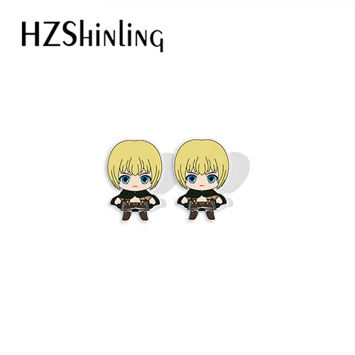 Серьги-гвоздики из эпоксидной смолы и акрила, с героями аниме атака на Титанов