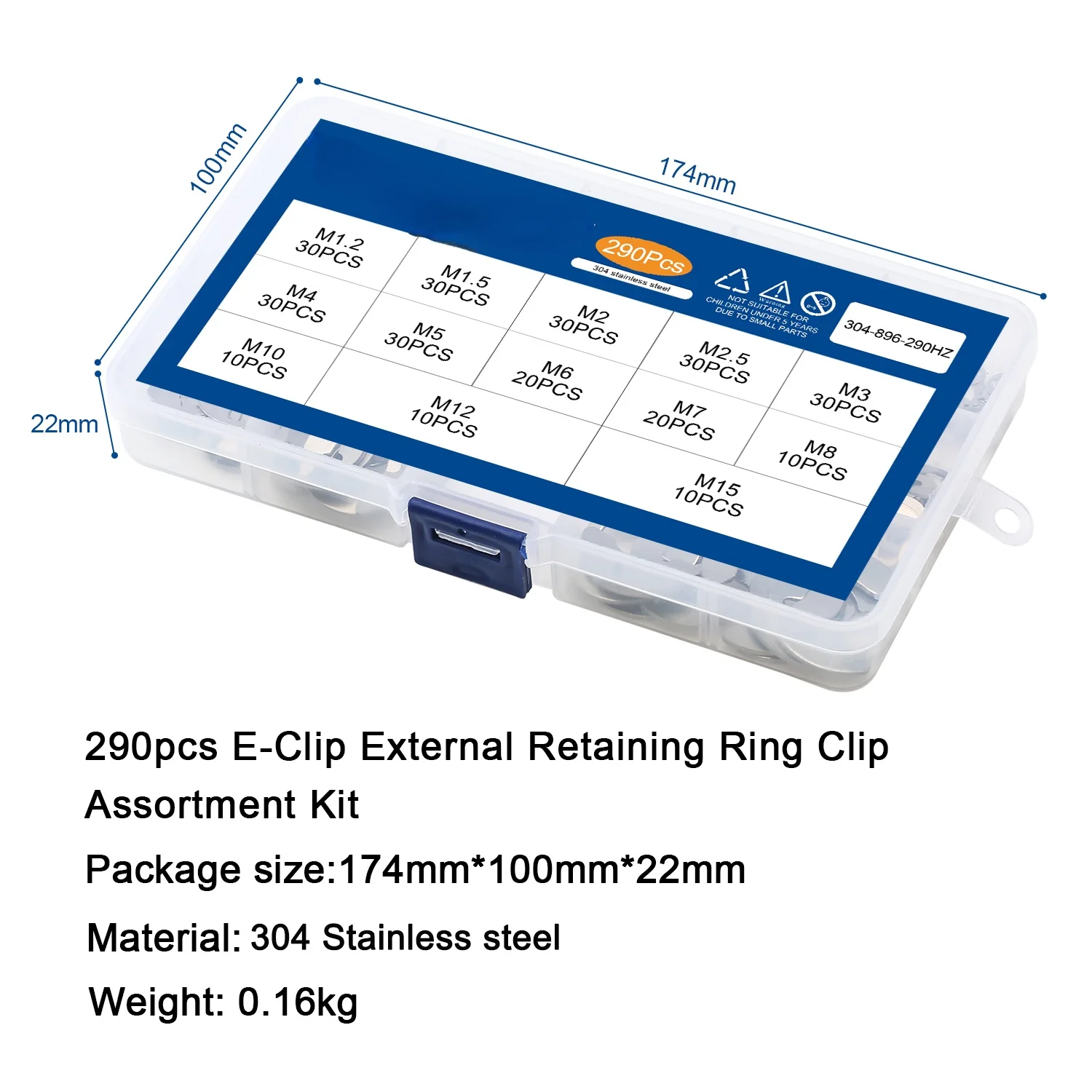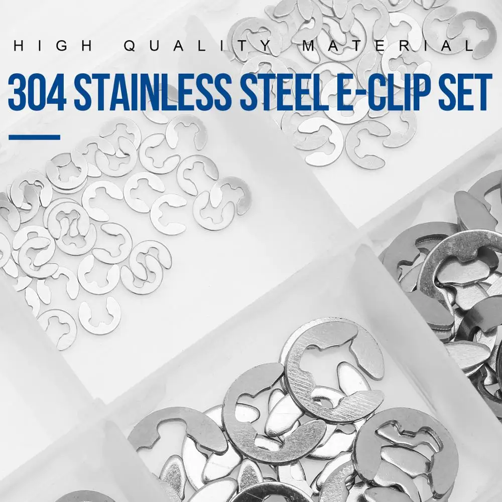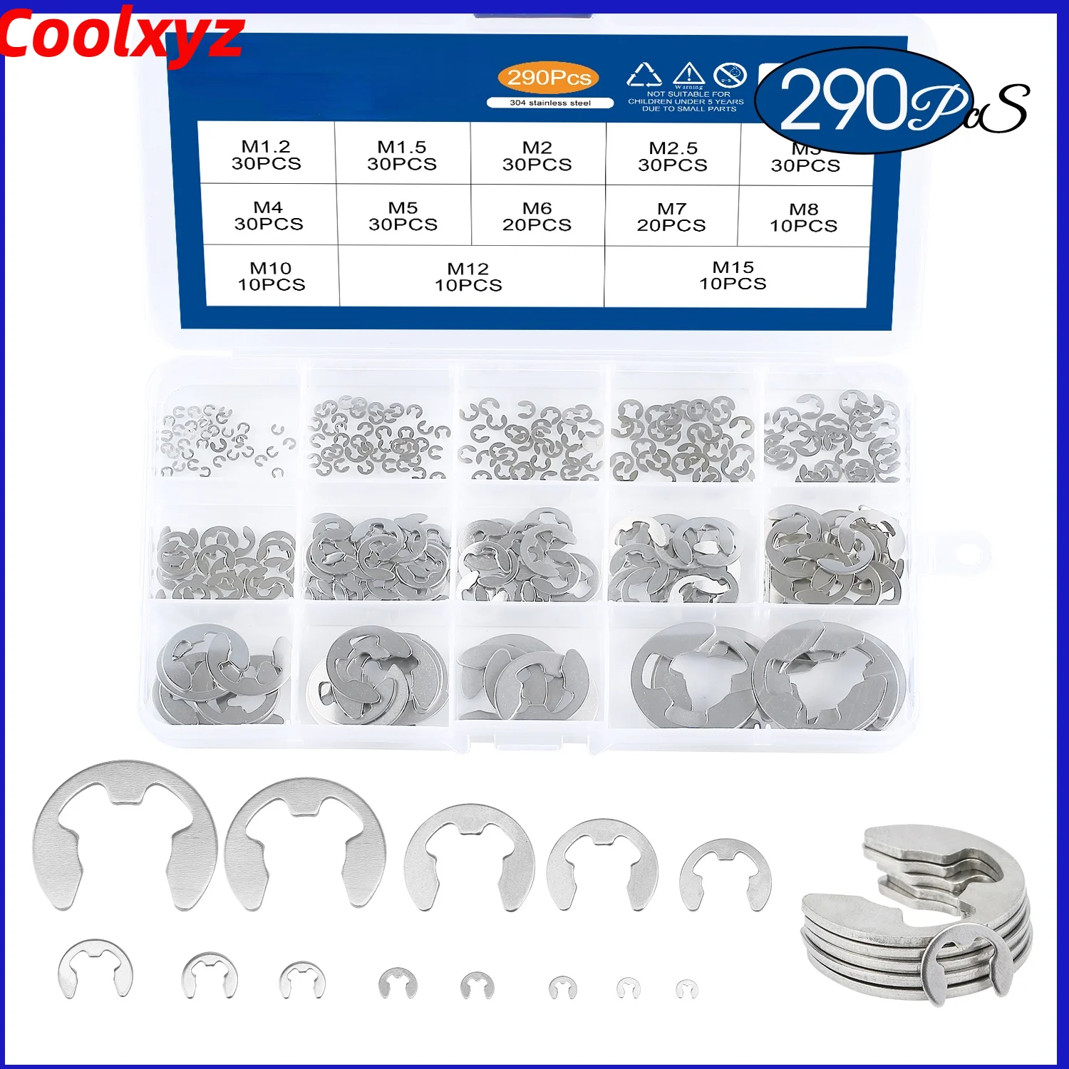290 шт.компл. E зажим Стопорная деталь 304 нержавеющая сталь 1,2-15 мм внешний удерживающий кольцевой зажим для шкива вала