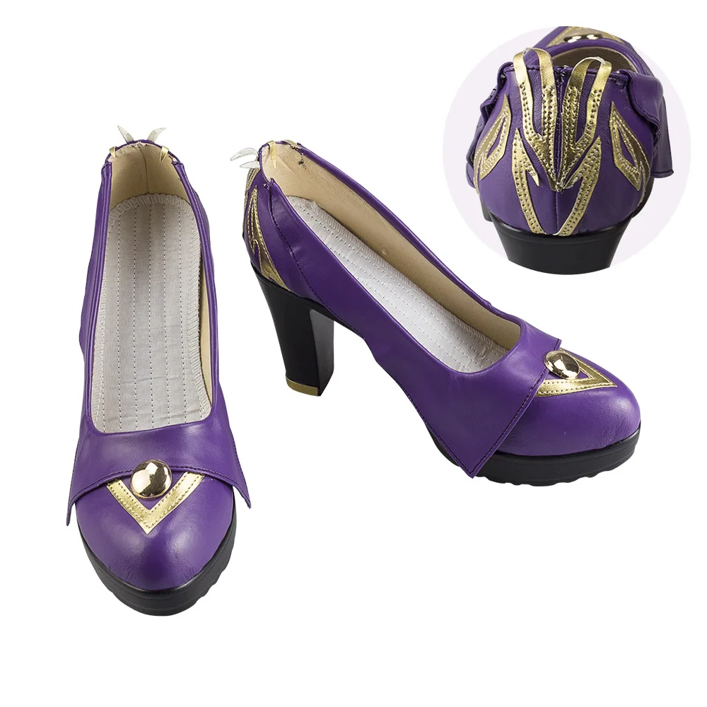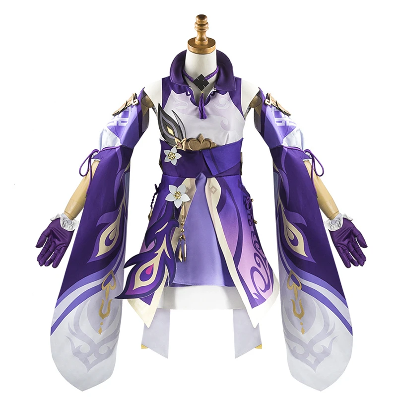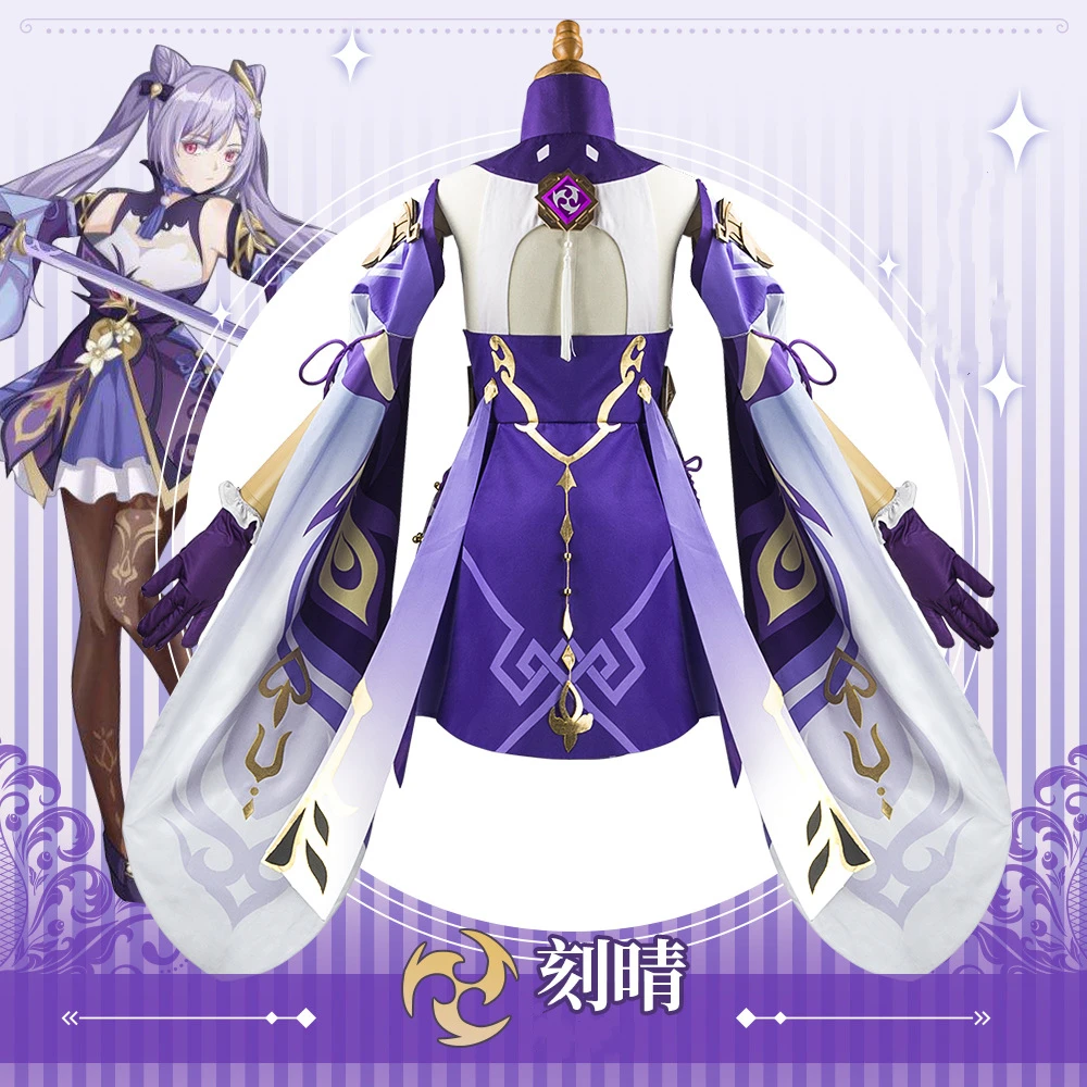 Игра Genshin Impact женщины Keqing Косплей Хэллоуин Фиолетовый Ke Qing костюм удар Genshin Keqing конский хвост смешанные парики обувь