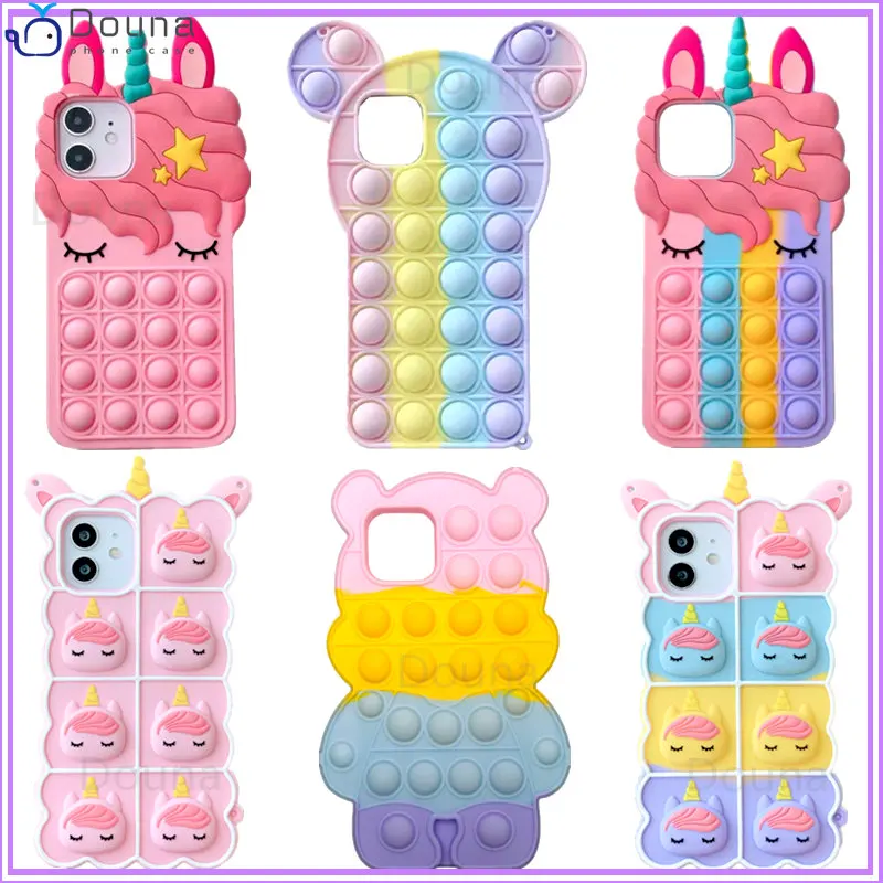 Featuresrelieve stress pop fidget toys push bubble soft silicone phone case