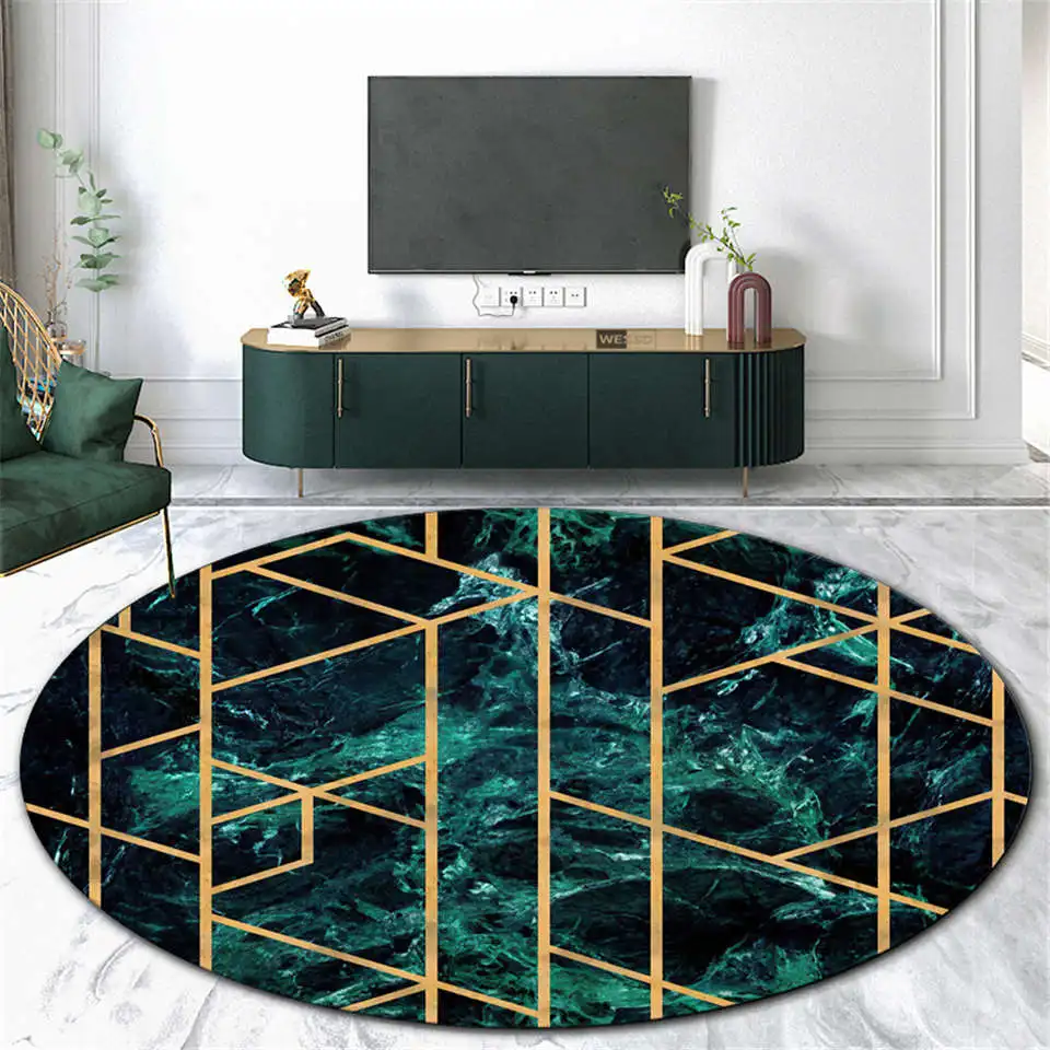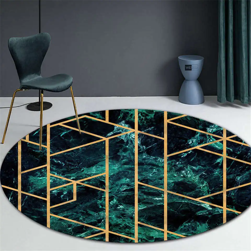 Зеленый Мраморный Круглый напольный ковер, роскошный Изумрудный ковер, ковер для журнального столика, Нескользящие Коврики для стула, моющийся ковер для спальни