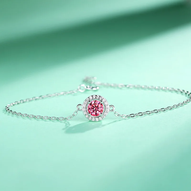 Браслет драгоценный камень: 0.5CT 5 мм розовый моиссанит (прошел испытание алмаза + с GRA сертификатом)