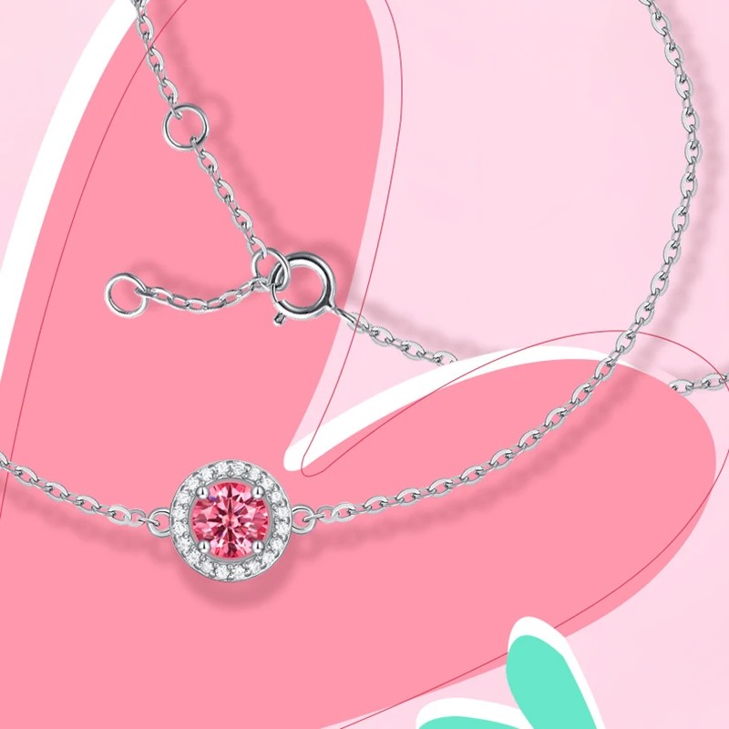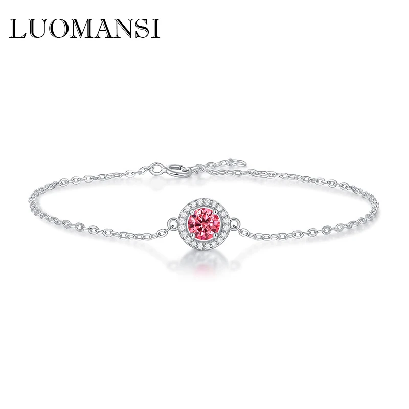 Luomansi 925 серебро карат 5 мм розовый Муассанит браслет с сертификатом GRA женские ювелирные изделия для свадьбы коктейвечерние НКИ подарок на день рождения