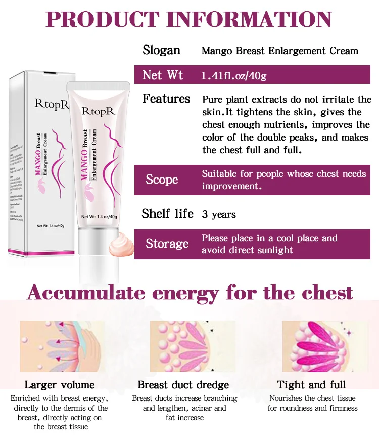 RtopR крем для увеличения груди для женщин, полная эластичность, уход за грудью, укрепляющая подтяжка, крем для быстрого роста груди, большой объем груди 40 г