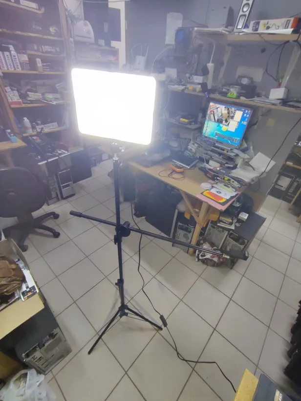 Штатив (тренога) конечно хлипковат, но для лампы в принципе достаточно) Если на доп.держатель (перекладину) повесить телефон, может упасть от перевеса. В остальном пойдет, светит неплохо, батареек в пульт нема. Доставка быстрая, курьером в руки. Упаковка изрядно пожеваная, но содержимое все цело