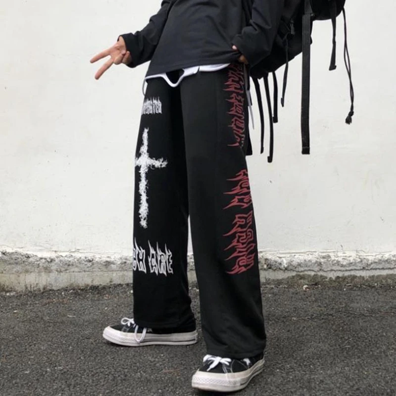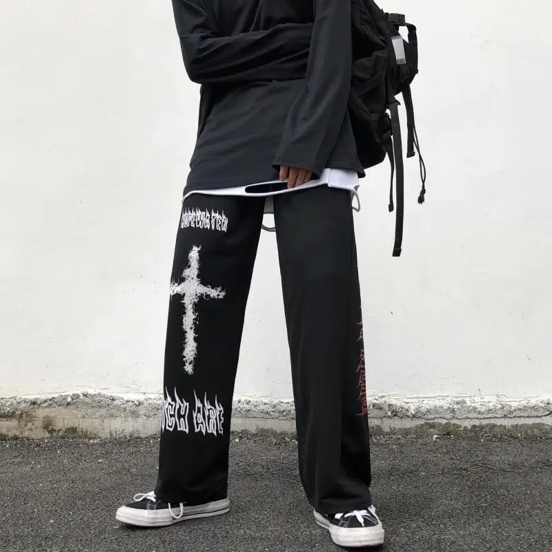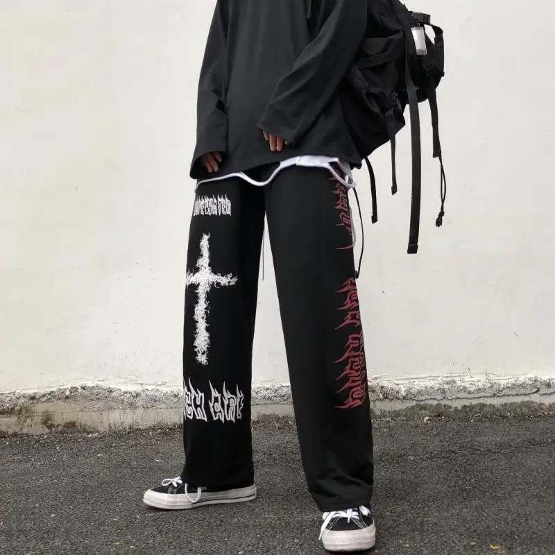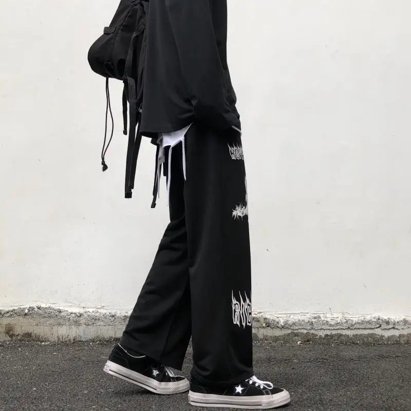 Мужские брюки с широкими штанинами Goth, прямые повседневные брюки в стиле граффити, в стиле Хай-стрит, Харадзюку, панк, хип-хоп