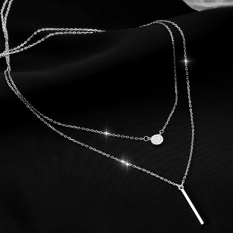 Женское Двухслойное длинное ожерелье из серебра 925 пробы с цирконом