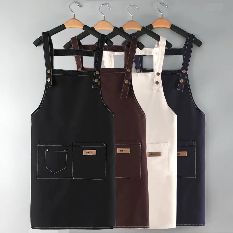 Фартук для мужчин и женщин, хлопок, Холщовый, ремень, поясной карман, на кухне.