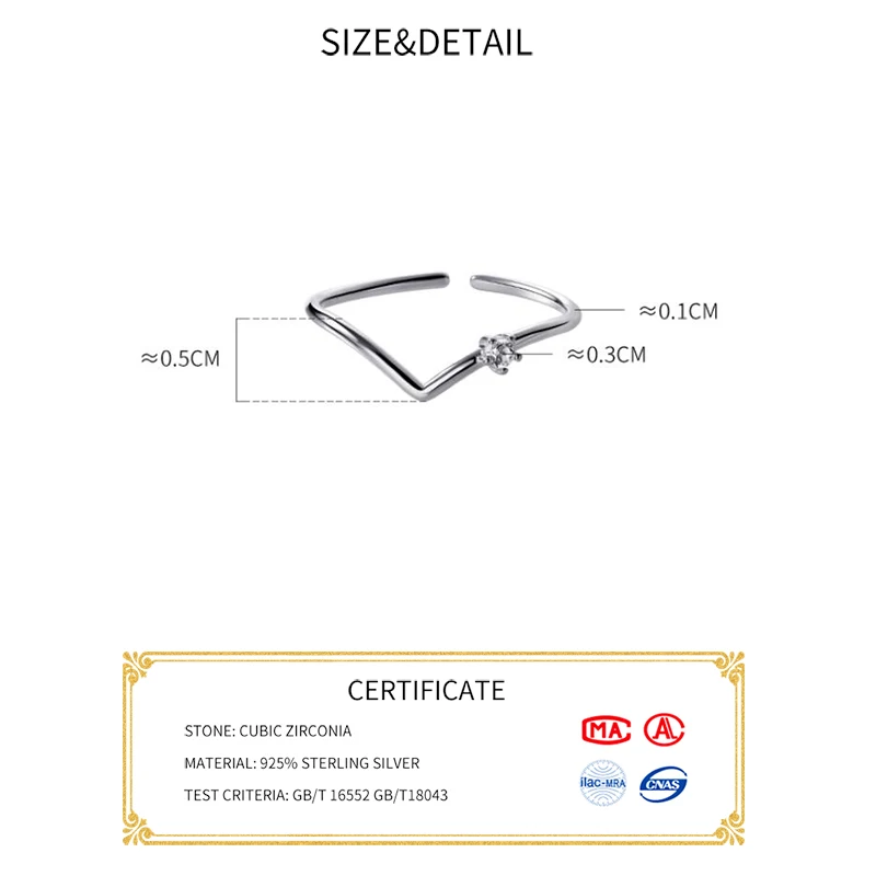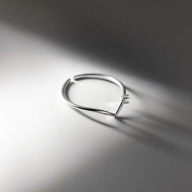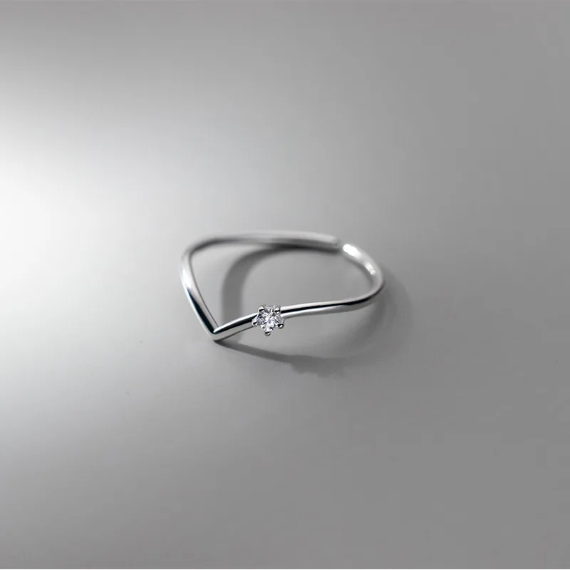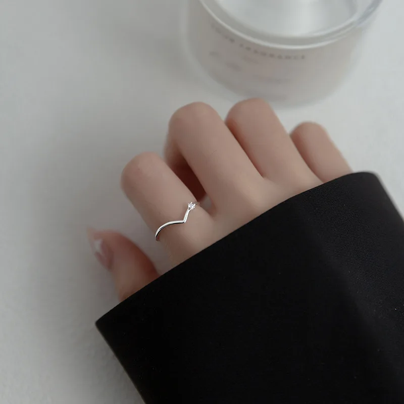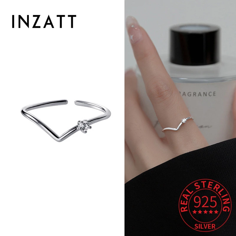 Регулируемое кольцо INZATT из настоящего серебра 925 пробы с цирконом и буквой V для очаровательных женщин, ювелирные изделия в стиле хип-хоп, минималистичные аксессуары