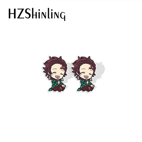 Серьги-гвоздики из эпоксидной смолы и акрила, с героями аниме атака...