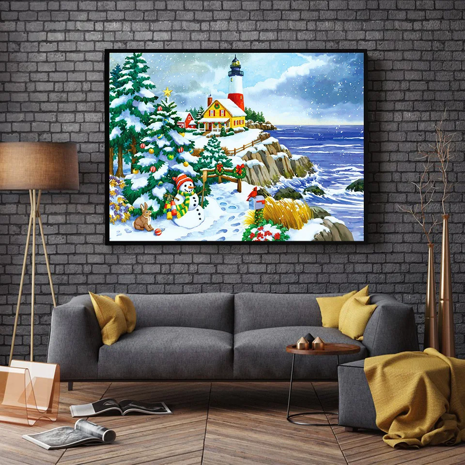 Алмазная вышивка маяк, Новое поступление, картина из страз, Приморский Пейзаж, зимний Набор для вышивки крестом, настенное искусство