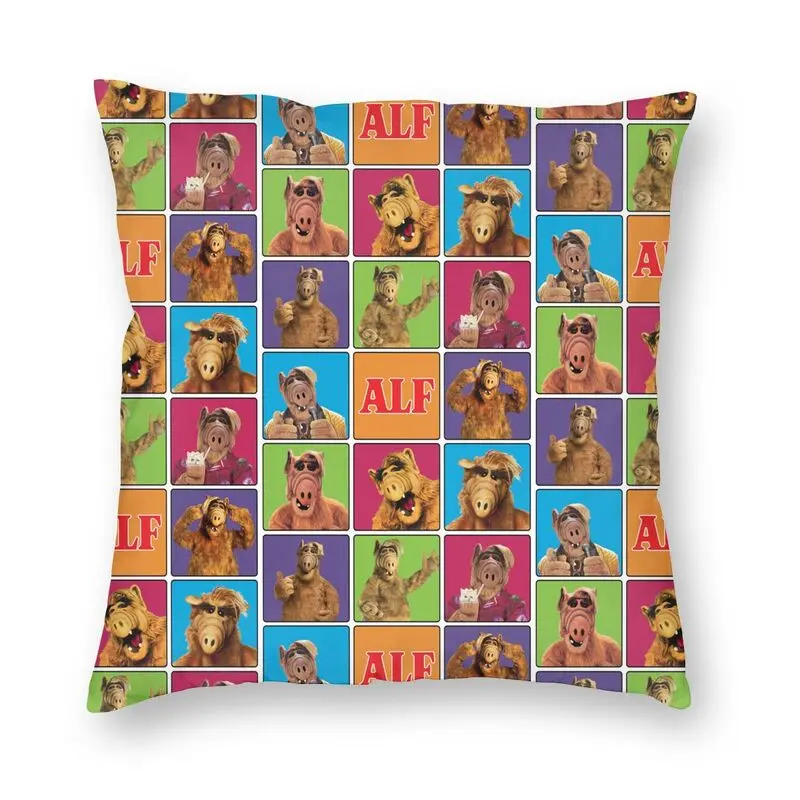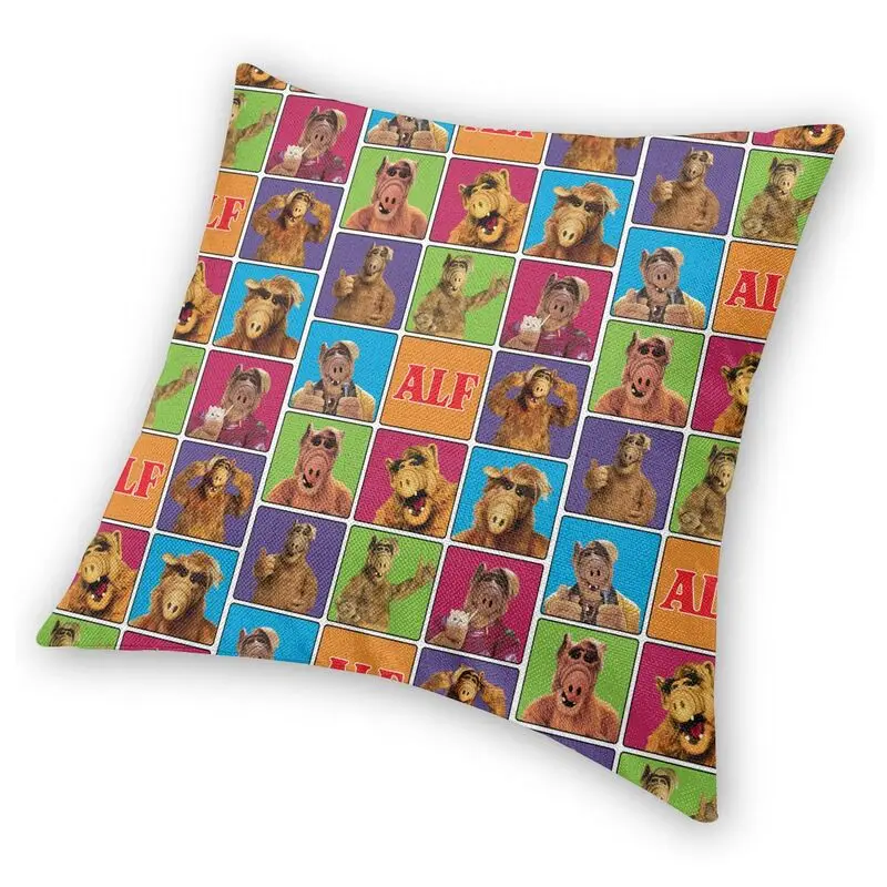 Чехол для подушки Alien Life Form ALF с коллажем, чехол для дивана, гостиной, научной фантастики, телевизионной программы, квадратная декоративная подушка, 45x45 см, полиэстер