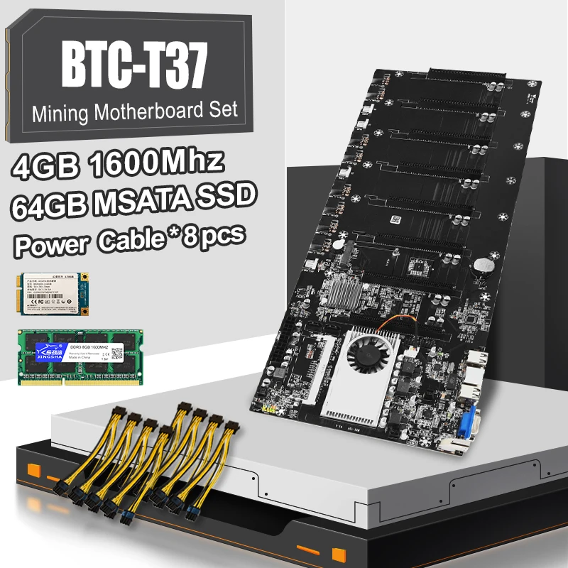 Набор материнской платы PCIE16X для майнинга, 8 GPU, набор для майнинга криптоэфирума с DDR3 4 Гб 1600 МГц ОЗУ 64 Гб mSATA SSD, кабель питания, 55 мм