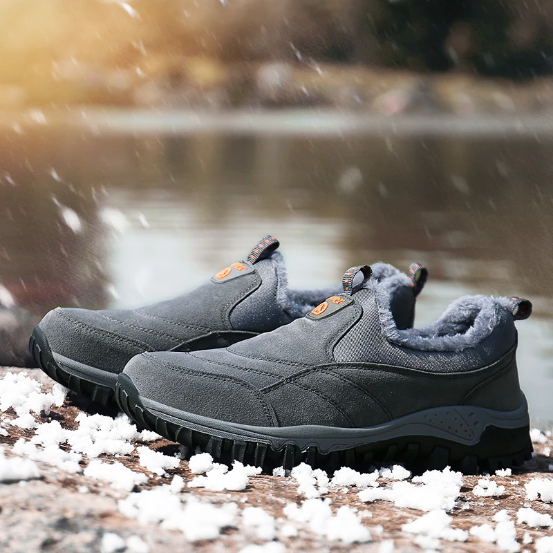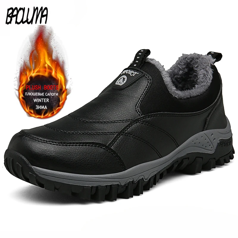 Зимние мужские ботинки для снега, теплые плюшевые уличные зимние ботинки, мужские рабочие лоферы, повседневная обувь, походные Нескользящие резиновые мужские уличные ботинки