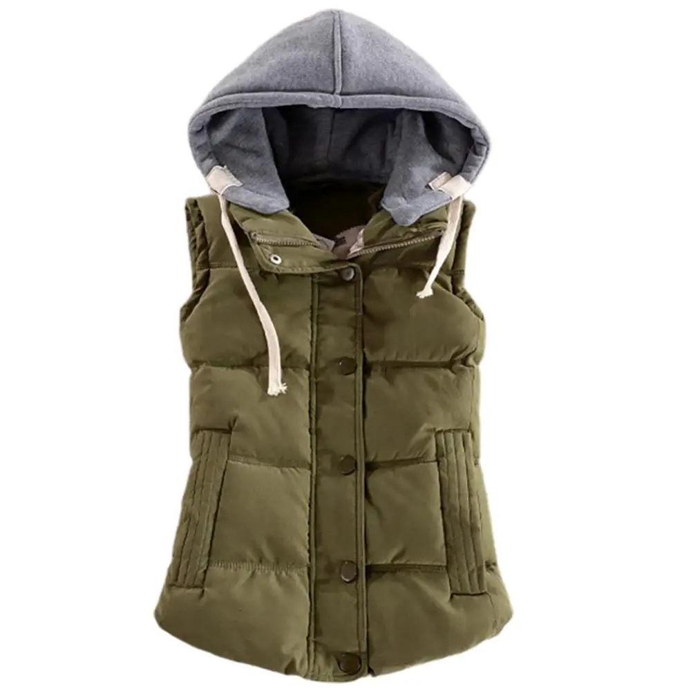 Женский осенне-зимний теплый пуховый жилет, съемный жилет с капюшоном и карманами на молнии