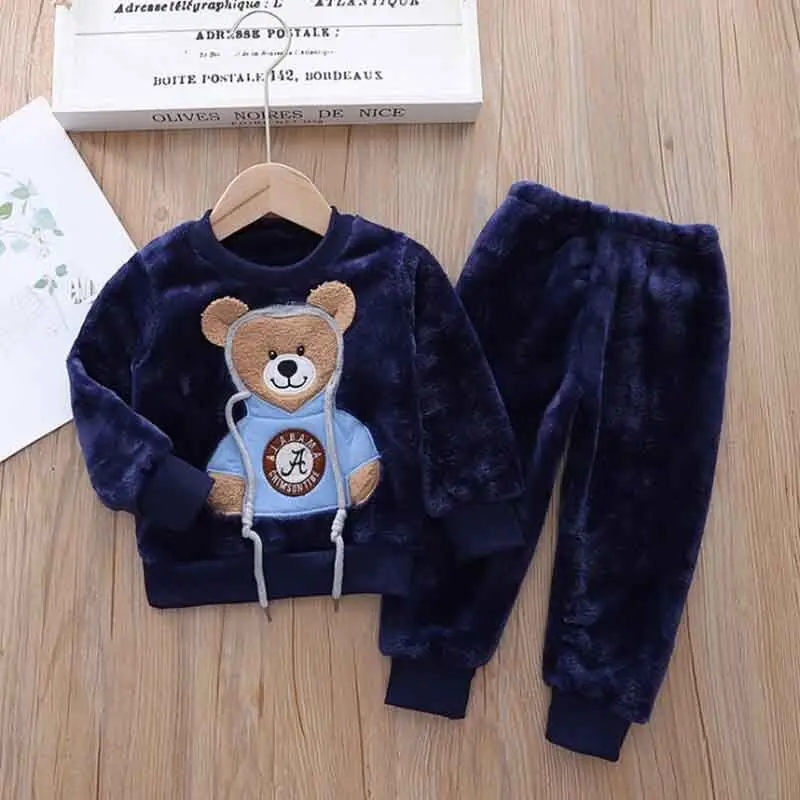 Осенне-зимние теплые пижамные комплекты для маленьких мальчиков и девочек, повседневный мягкий фланелевый флисовый Детский костюм, одежда с мультяшным медведем, детская одежда для сна