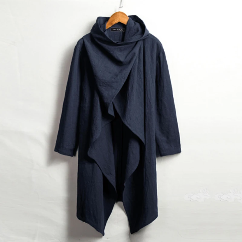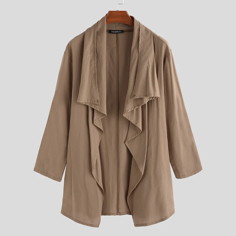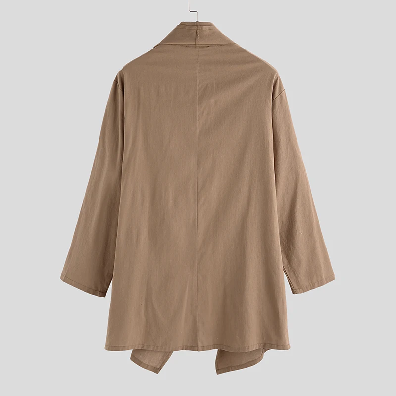 Тренчкот INCERUN мужской с длинным рукавом, хлопковый плащ-пончо с шарфом и воротником-шарфом, асимметричная однотонная верхняя одежда, 2022