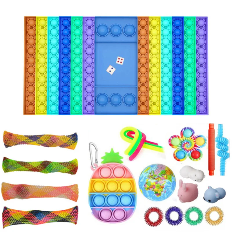 Радужная шахматная доска с пузырьками, сенсорные игрушки, большая и...