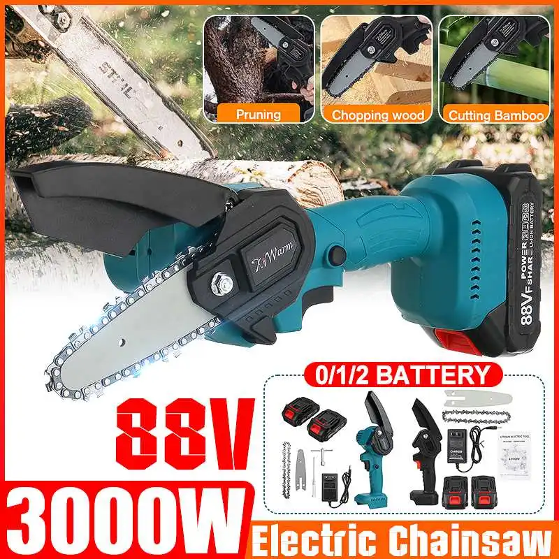 Электрическая цепная мини-пила, 3000 Вт, 6 дюймов, 88 в, с 2 аккуму...