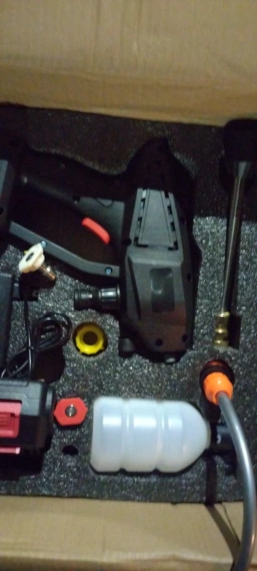 Посылка включает в себя 1:1 * Автомобильный распылитель воды высокого давления1 * Фильтр1/2 * батарея1 * пенопласт1 * Водопровод2 * быстрый разъем1*0 ° выход воды1*40 ° выход воды1 * Руководство пользователя на английском языке1 * удлинитель1 * зарядное устройство(1 * адаптер штепсельной вилки, согласно вашей стране доставки)