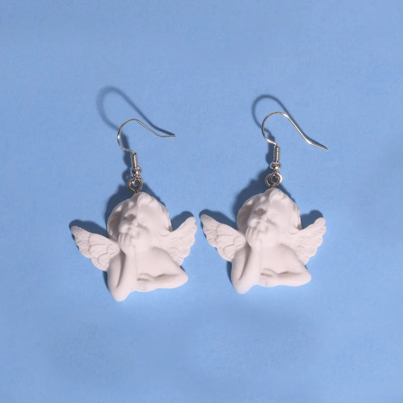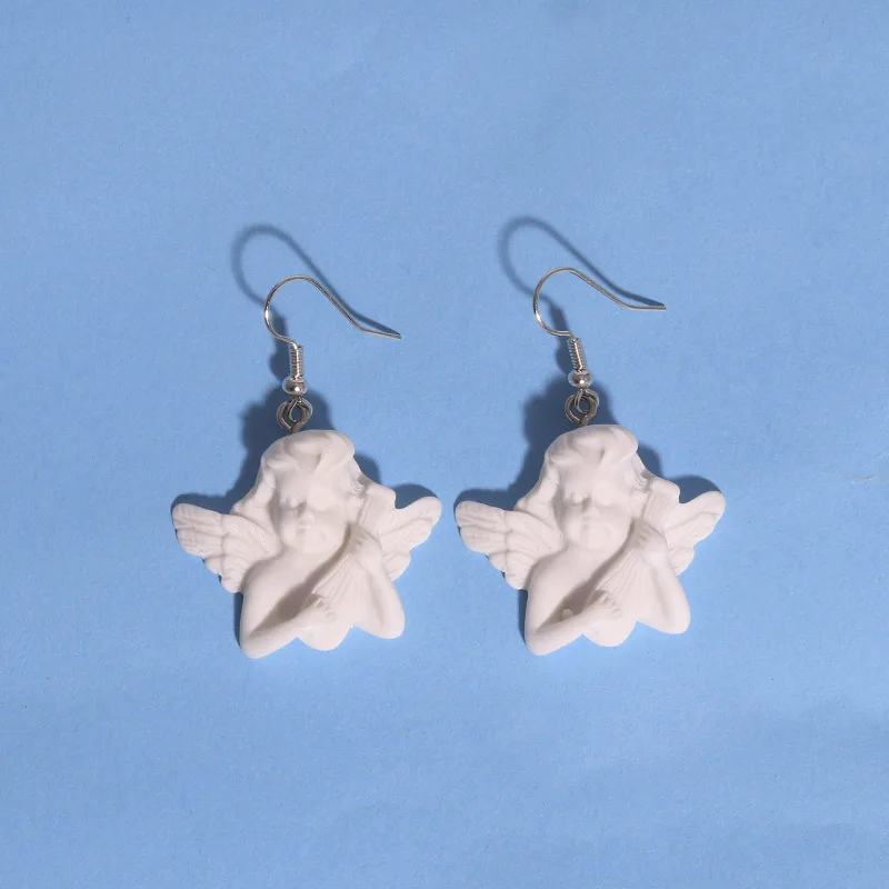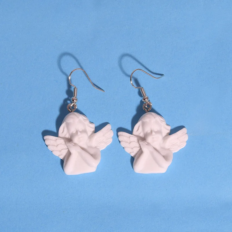 Серьги-подвески женские в стиле Купидон, ювелирные украшения в винтажном стиле, гипсовая смола, с 3d фигурками ангела, для девушек и женщин, Подарочные Кольца Дружбы