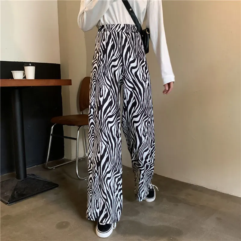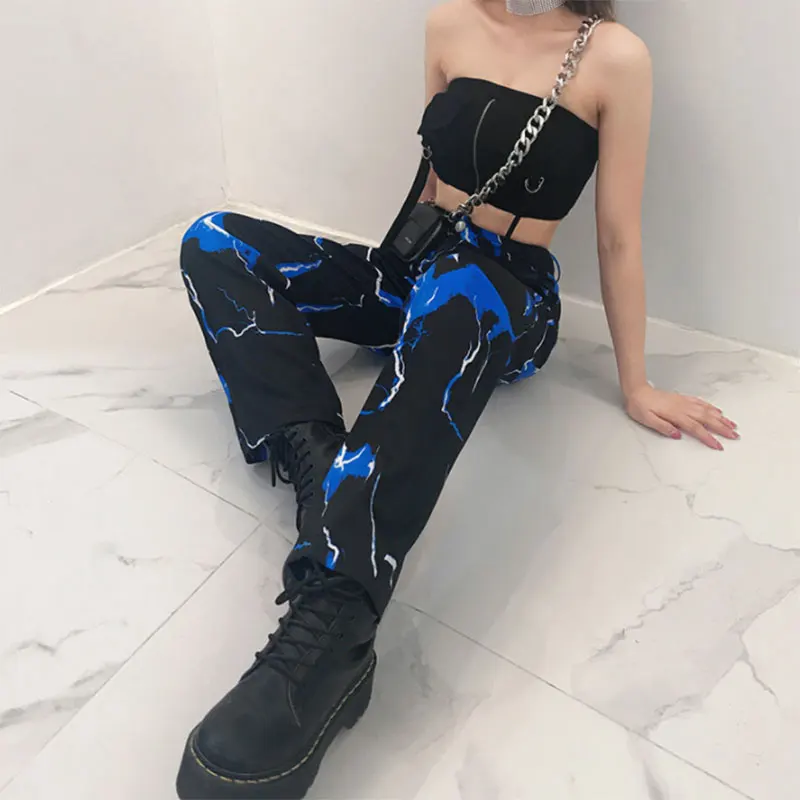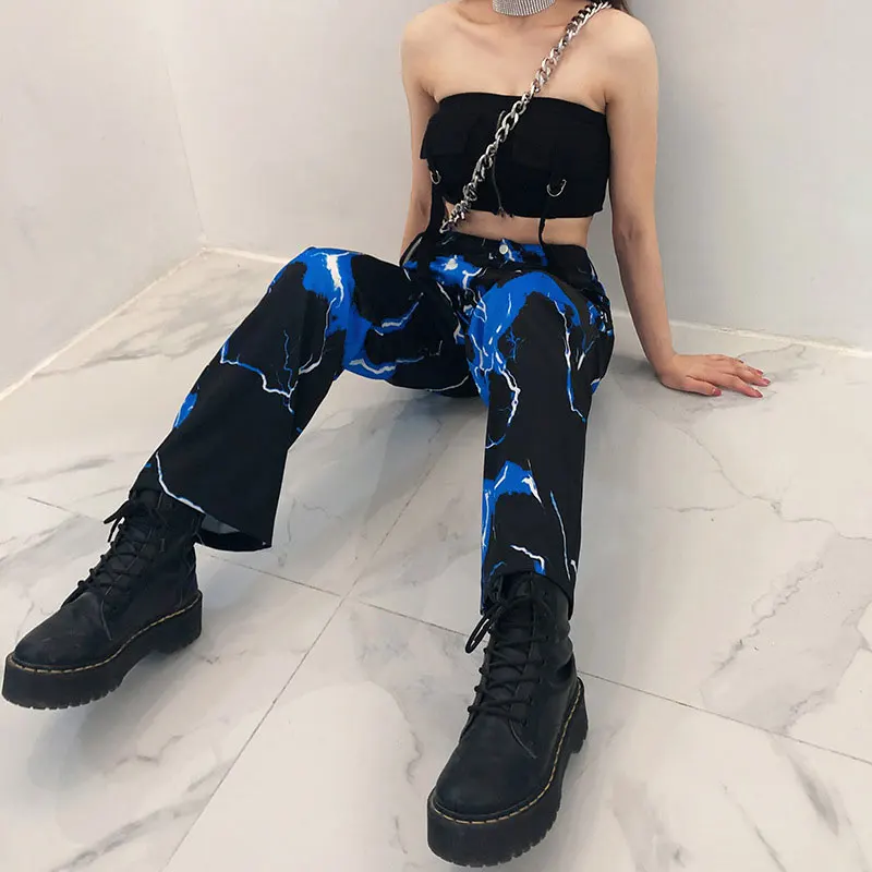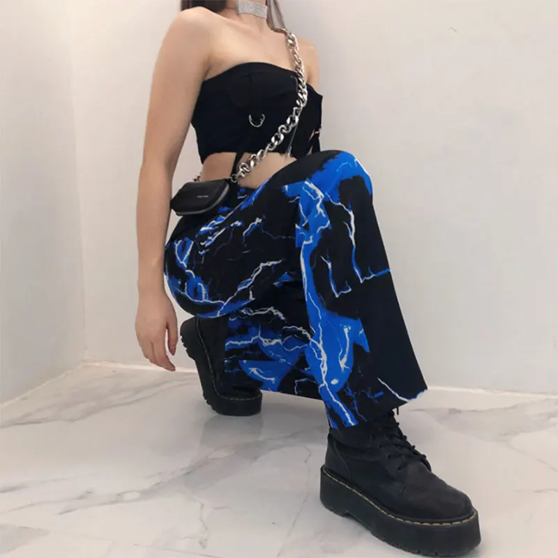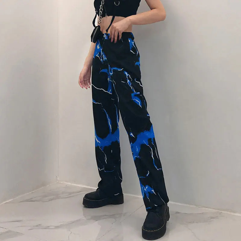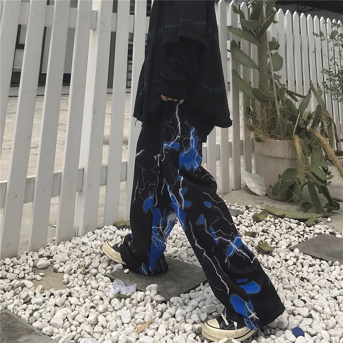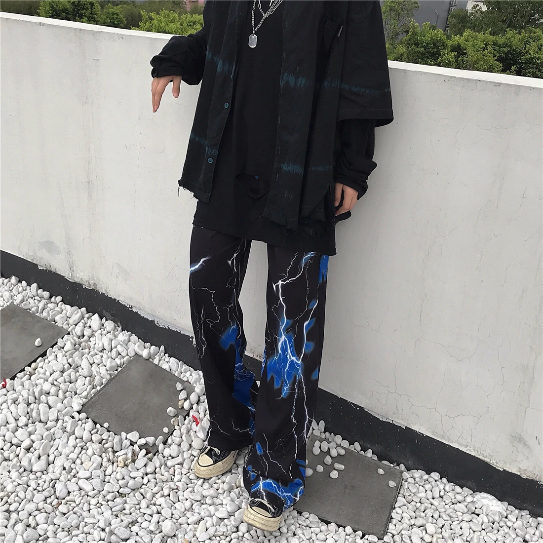 Брюки женские свободные в стиле Харадзюку, с принтом молнии, на вес...