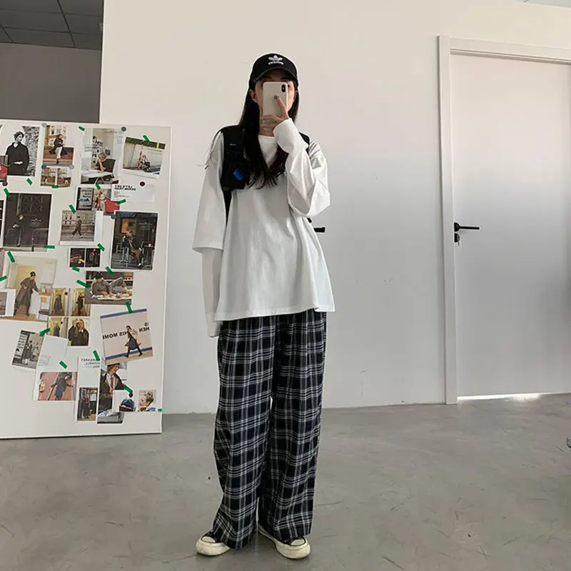Повседневные шикарные клетчатые брюки в стиле Харадзюку 2021 улична...