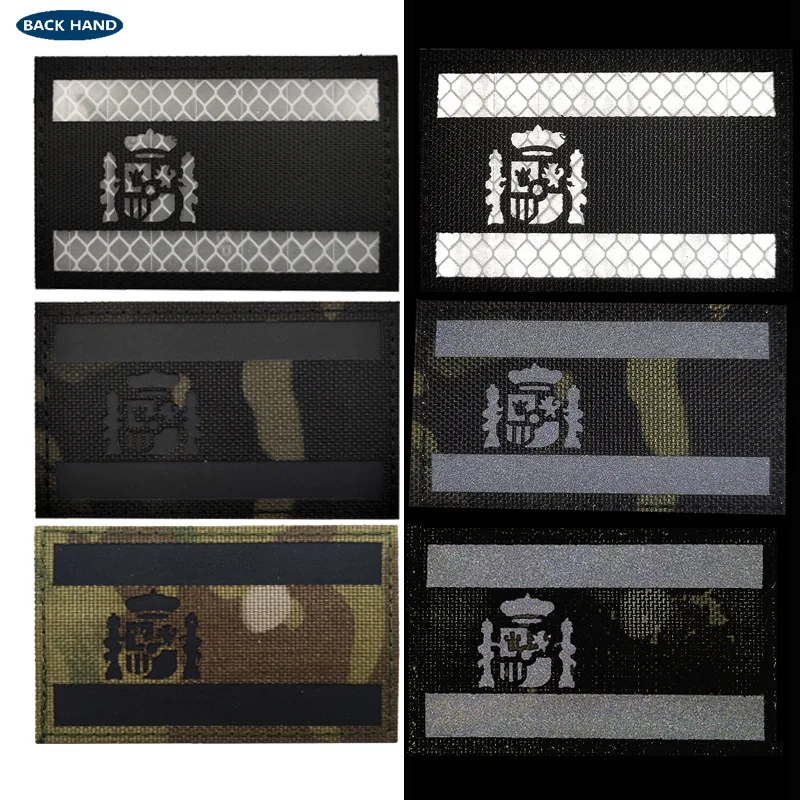 Нашивки с испанским флагом, 1 шт., ИК-эмблема, инфракрасные Светоотражающие военные нашивки с крючком и петлей, тактические государственные флаги