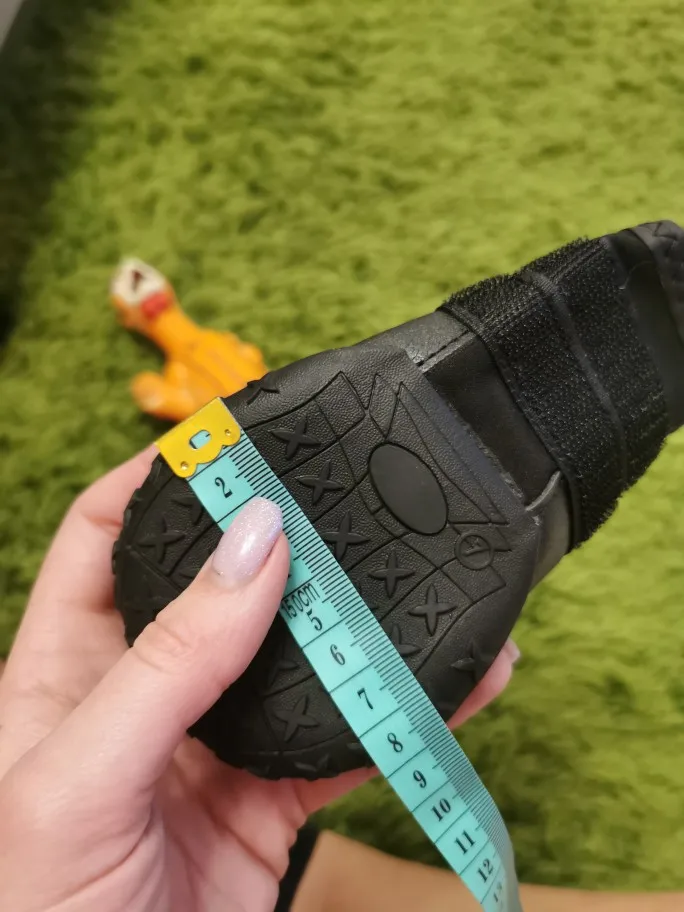 Обувь очень большая. Размер 7 больше, чем размеры представлены. Поскольку наружные измерения почти такие же, как и внутренние, так как резинка сгибается по бокам, так что это делает больше места для лап. Хорошее качество. Удобно использовать, но мы не можем использовать, потому что размер слишком большой: (