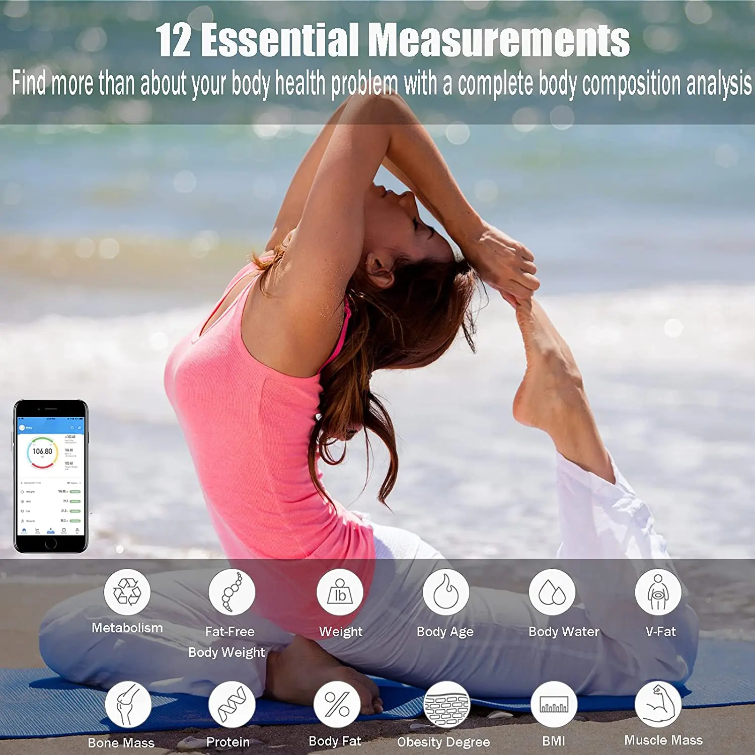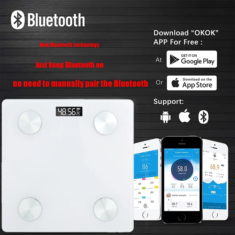 Весы тела весы состава 2 оснащены Bluetooth 5,0 с низким энергопотреблением. Используйте приложение okok для быстрой синхронизации данных о весе тела и проценте жира в организме.