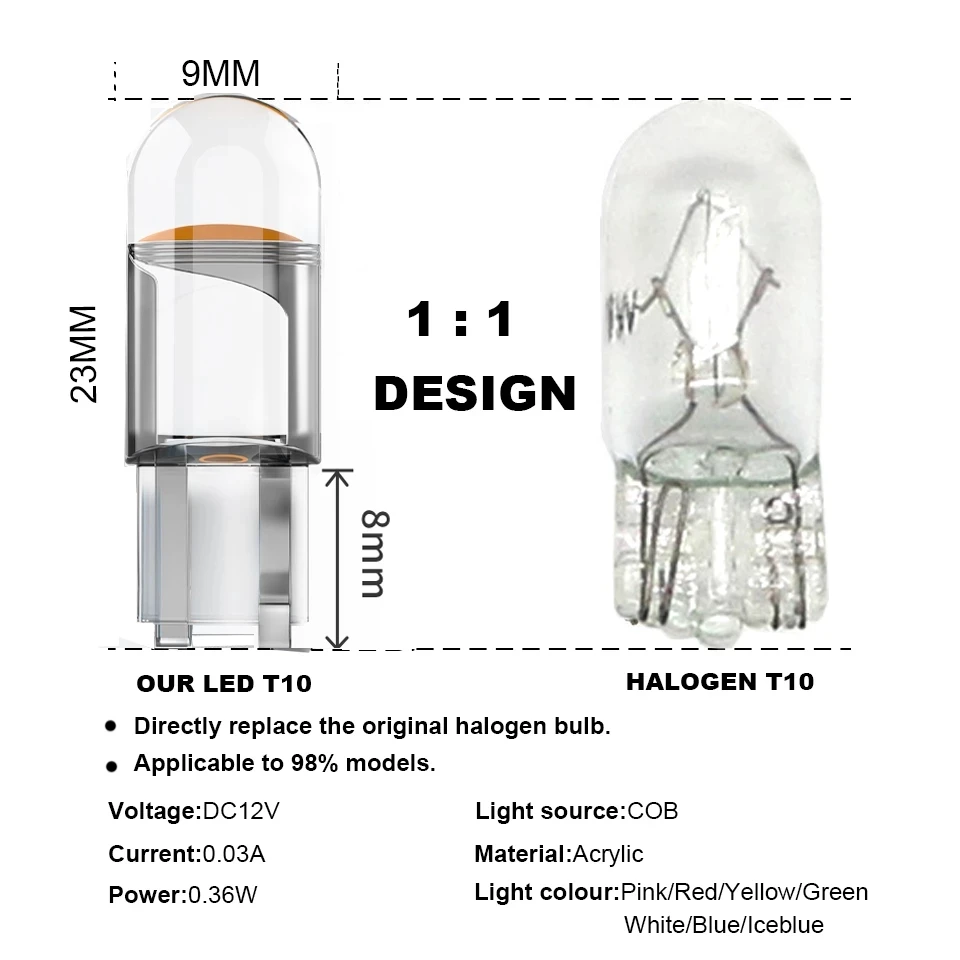 10 шт. Lucent W5W T10 Светодиодная Cob стеклянная Автомобильная све...