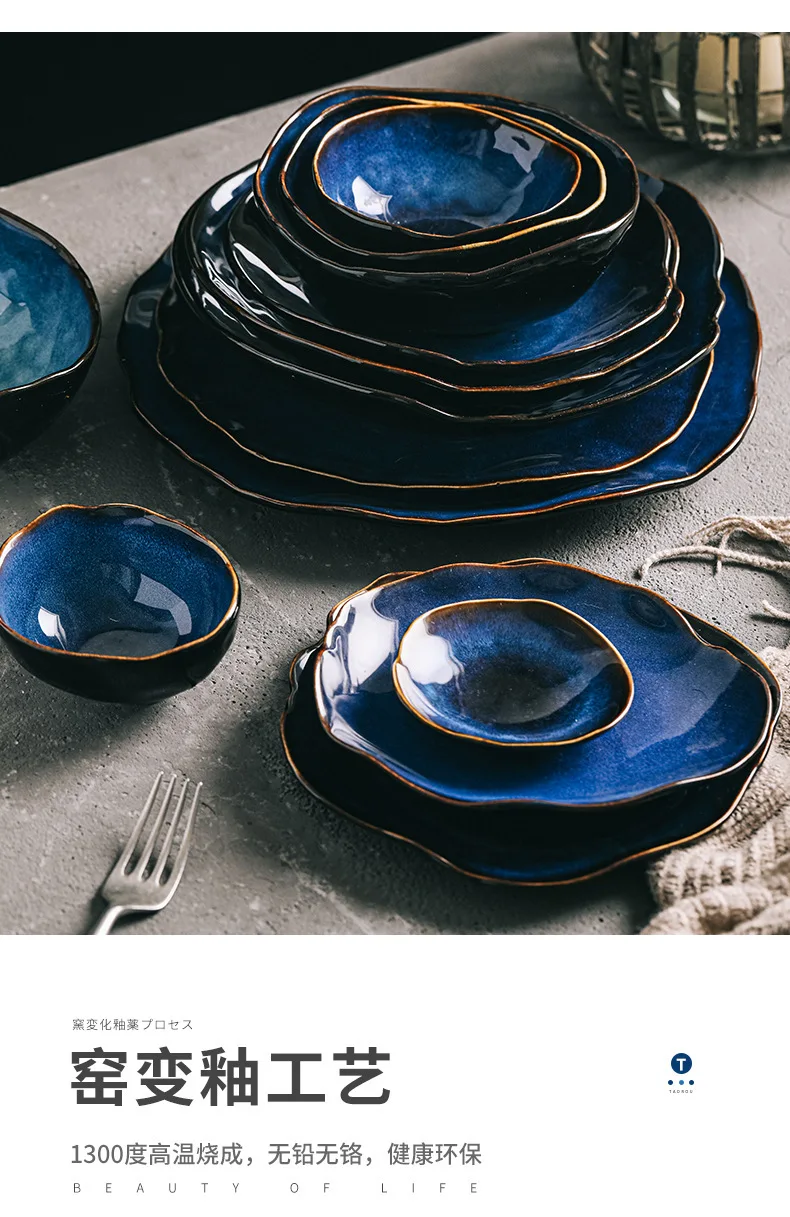 RELMHSYU керамическая темно-синяя Асимметричная тарелка в японском ...
