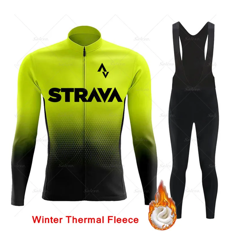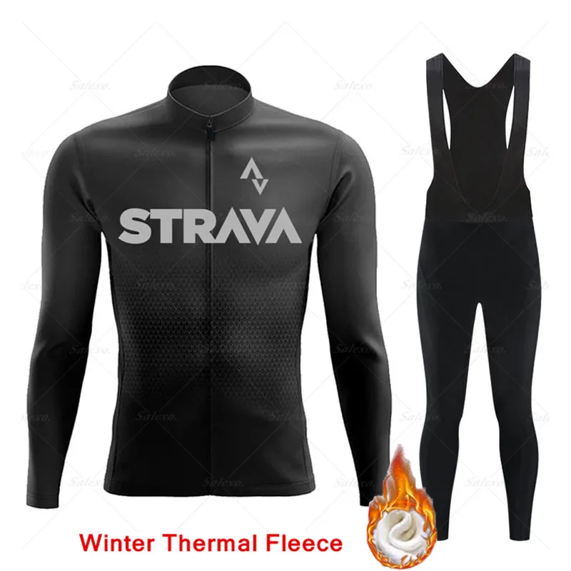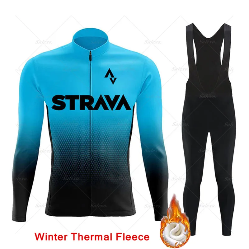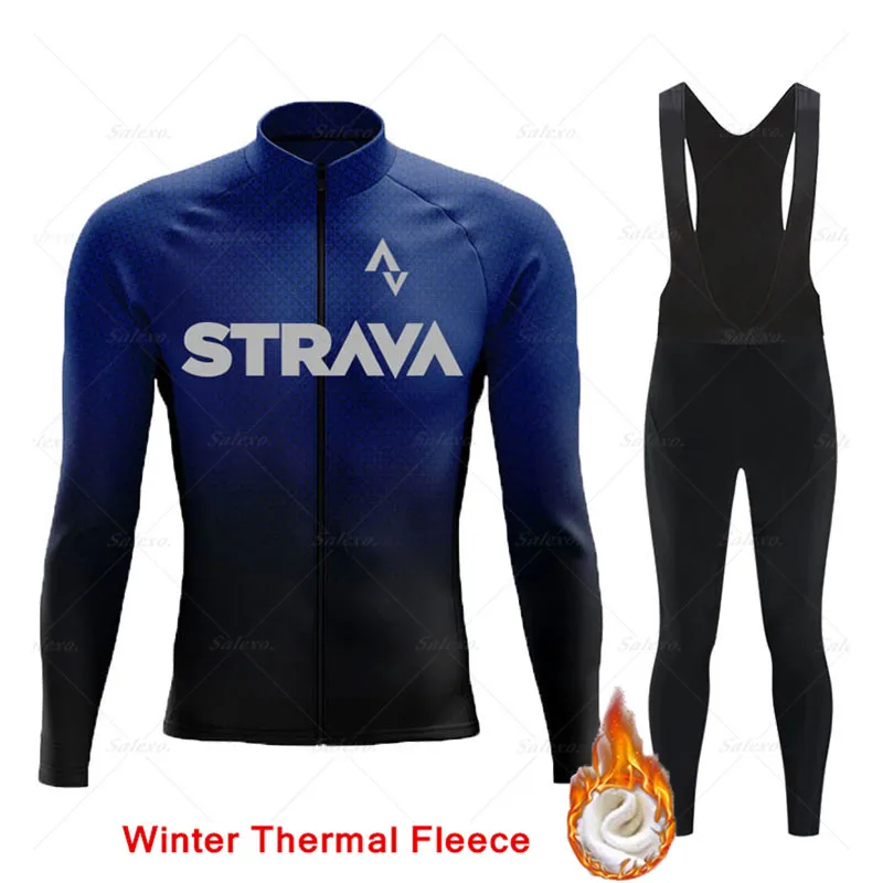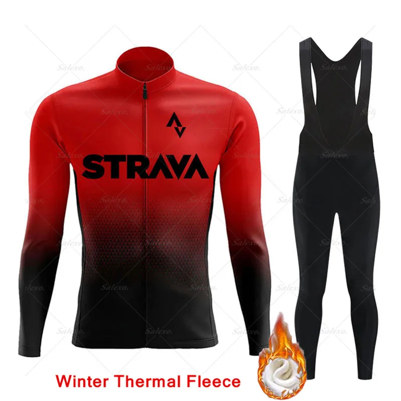 Трикотажный комплект для велоспорта STRAVA, Зимняя Теплая Флисовая ...