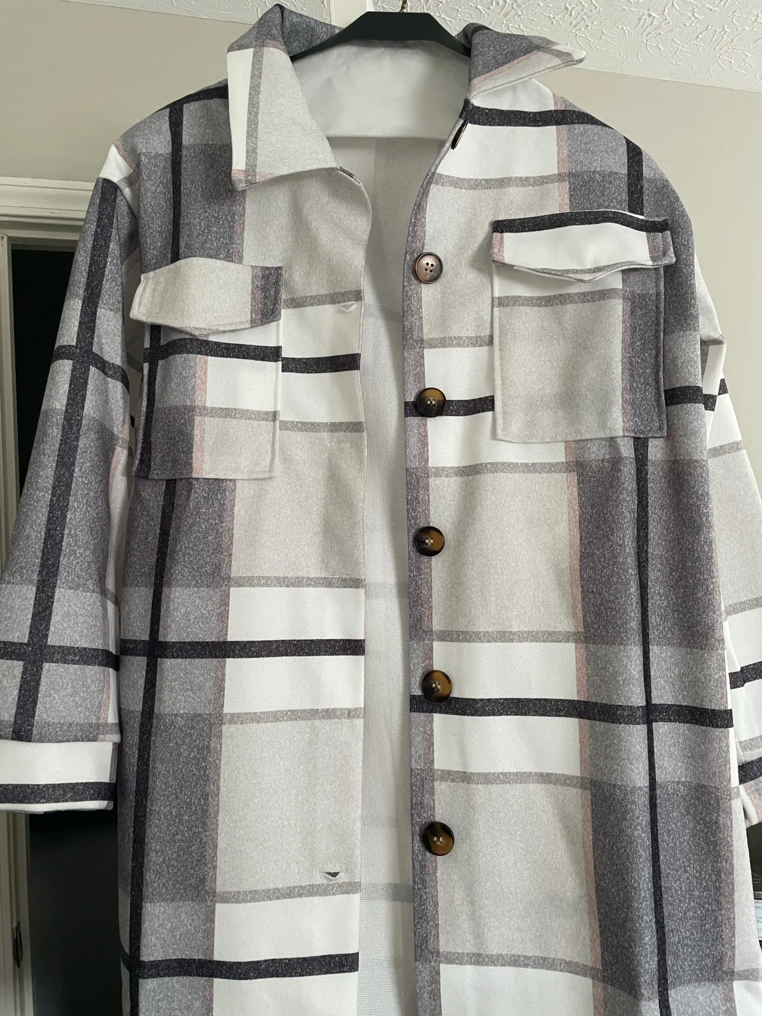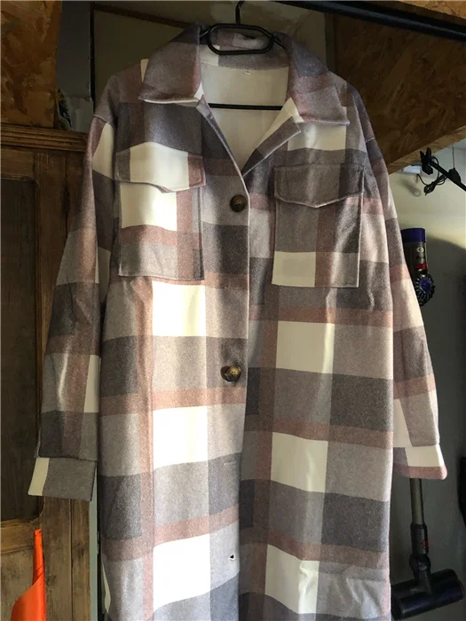 Осенне-зимняя женская клетчатая куртка, повседневное длинное пальто в клетку с отложным воротником, женское толстое теплое шерстяное пальто большого размера