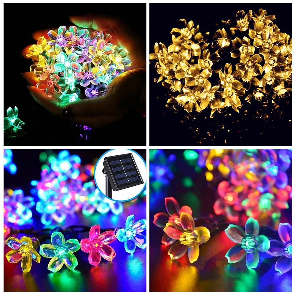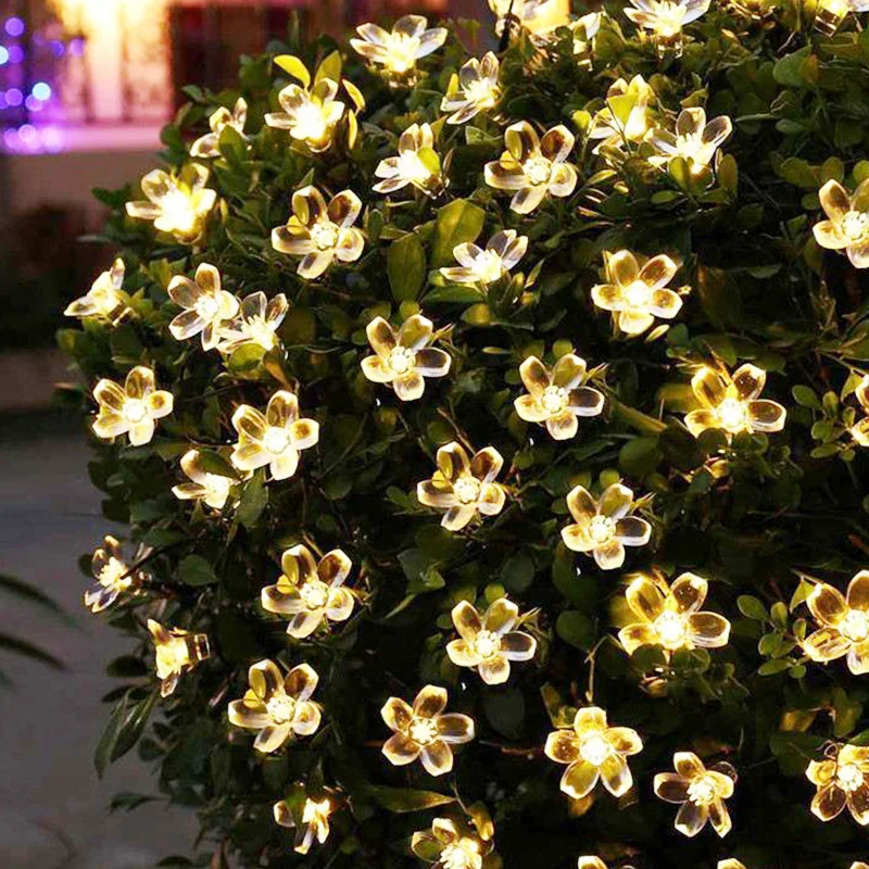 7 м 50LED Солнечная гирлянда, светодиодная уличная гирлянда Sakura, лампа для газона, Водонепроницаемая IP65, Рождество, Новый Год, наружное освещение, Декор