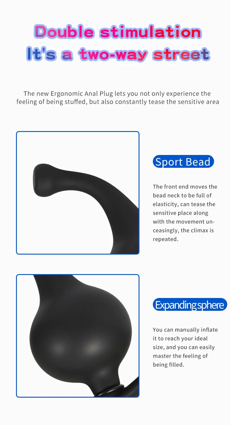 1. Медицинский силикон, нетоксичный, прочный, ультра мягкий, с гибкой горловиной, без запаха, бесшовный и Безопасный в использовании; 2. Эргономичный дизайн не сжимает анус капилляры и не влияет на нормальное выведение; 3. Один размер подходит для всех размеров, удобно носить; 4. Надувная труба может быть разобрана, и вы можете носить ее для покупок, Для работы, купания и занятий спортом. В любом месте и в любое время дает вам беспрецедентный стимул; 5. Очень хорошо подходит для тренировки мышц задницы, а также 6. Делает оргазм гораздо более интенсивным