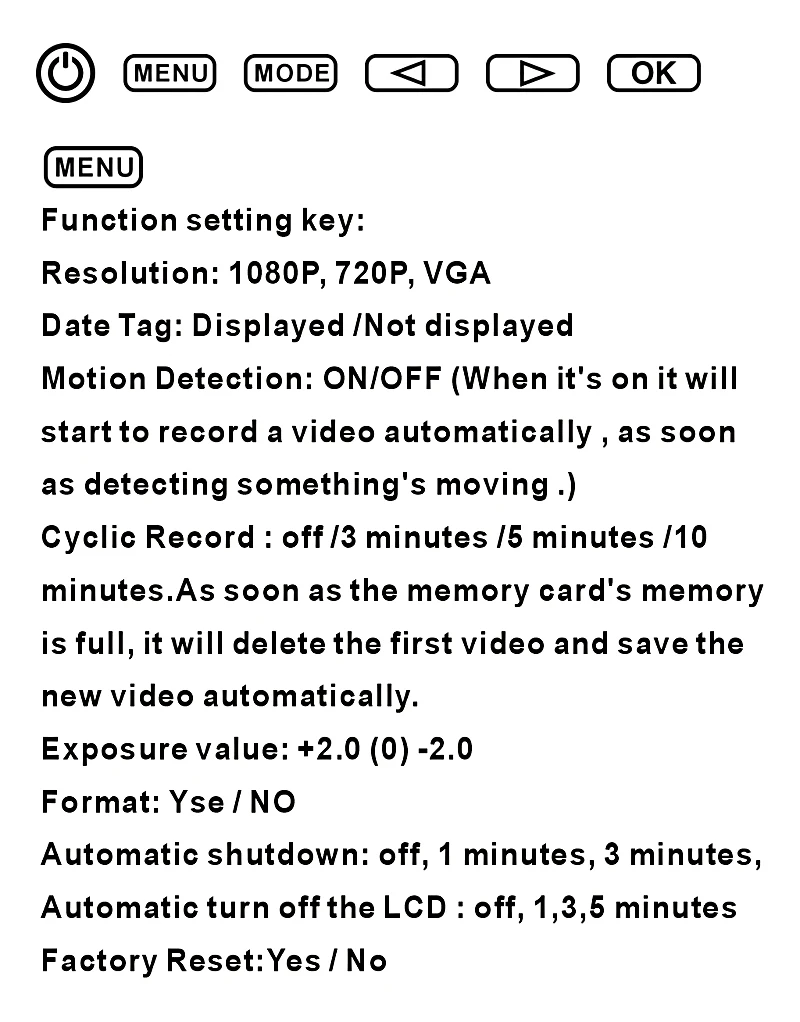 Resolution1080P, 720P, VGA