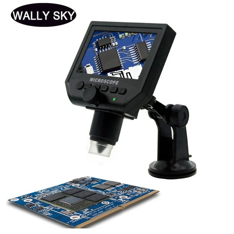 Цифровой микроскоп, 600x3,6 МП, USB, 4,3 дюймов, HD ЖК-дисплей, видео микроскоп с алюминиевым сплавом, сцена для ремонта печатных плат