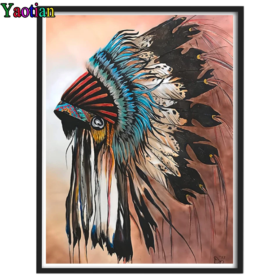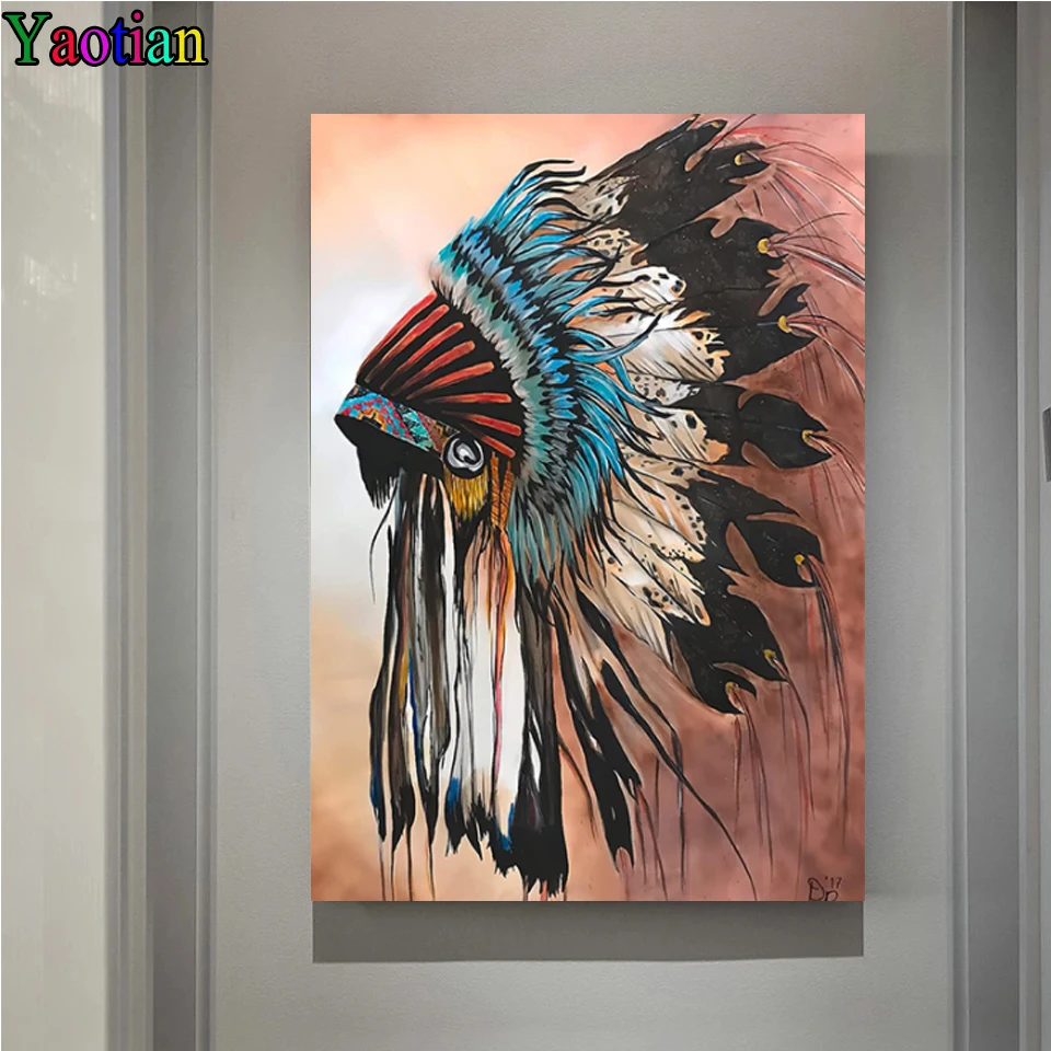 Полный квадрат дрель алмазная живопись Индеец перья коренной 5D DIY Алмазная вышивка мозаичный узор Декор для дома подарок