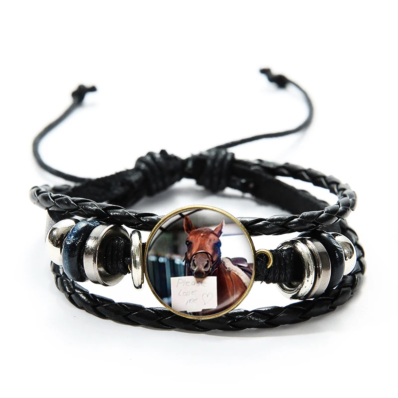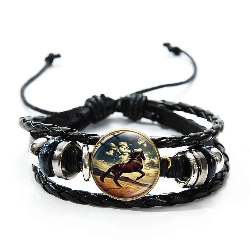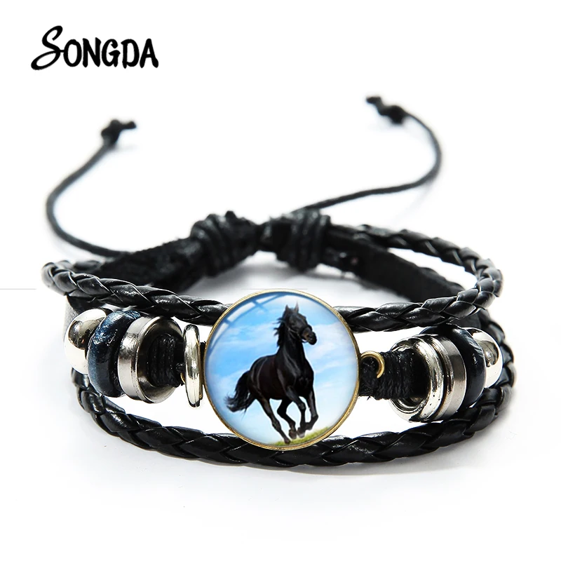 Плетеные браслеты в виде черной лошади в стиле панк, ретро, кожаные браслеты в виде лошадей и животных, ручная вязка, хорошее качество, мужская бижутерия, подарки