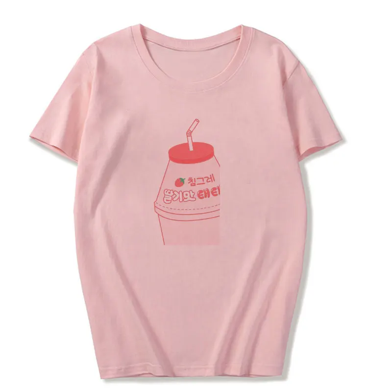 Модная Летняя женская Коктейльная Футболка с принтом напитков в стиле Харадзюку с круглым вырезом и коротким рукавом розовая повседневная спортивная корейская мода женская футболка