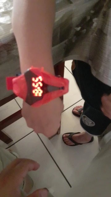 relógio simples, mostra apenas a hora, data, ano e muda o formato... relógio simples conforme anúncio, n sei se é aprova d'água (ou resistente). chegou dentro do prazo!