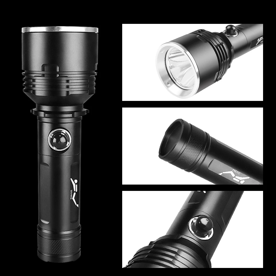 О фонарик для дайвинга XHP100TНовейший и самый сильный светодиодный фонарик для дайвинга XHP100, высокояркий фитиль XHP100, всесторонне повышает производительность подводного освещения, XHP100-это первый выбор для подводной деятельности, также подходит для активного отдыха, например для семьи. Он более продвинутый, чем другие фонарики для дайвинга XHP90.3, и глубина погружения может достигать 800 м. Материал изделия изготовлен из Супер авиационного алюминиевого сплава с водонепроницаемым эффектом IPX8, который может легко обрабатывать более десяти часов под водой. Это профессиональный светодиодный фонарик для дайвинга. Это самый мощный и Яркий фитиль в AliExpress. Позволяет свободно нырять. Его яркость выходит за рамки вашего воображения.