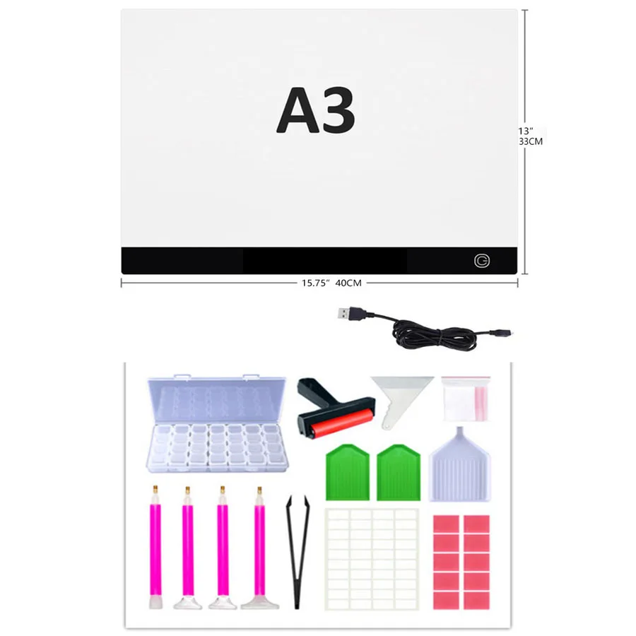 Большой светодиодный планшет для рисования A3, Светодиодная панель с подсветкой, аксессуары для алмазной живописи, наборы инструментов, алмазная вышивка, защита глаз